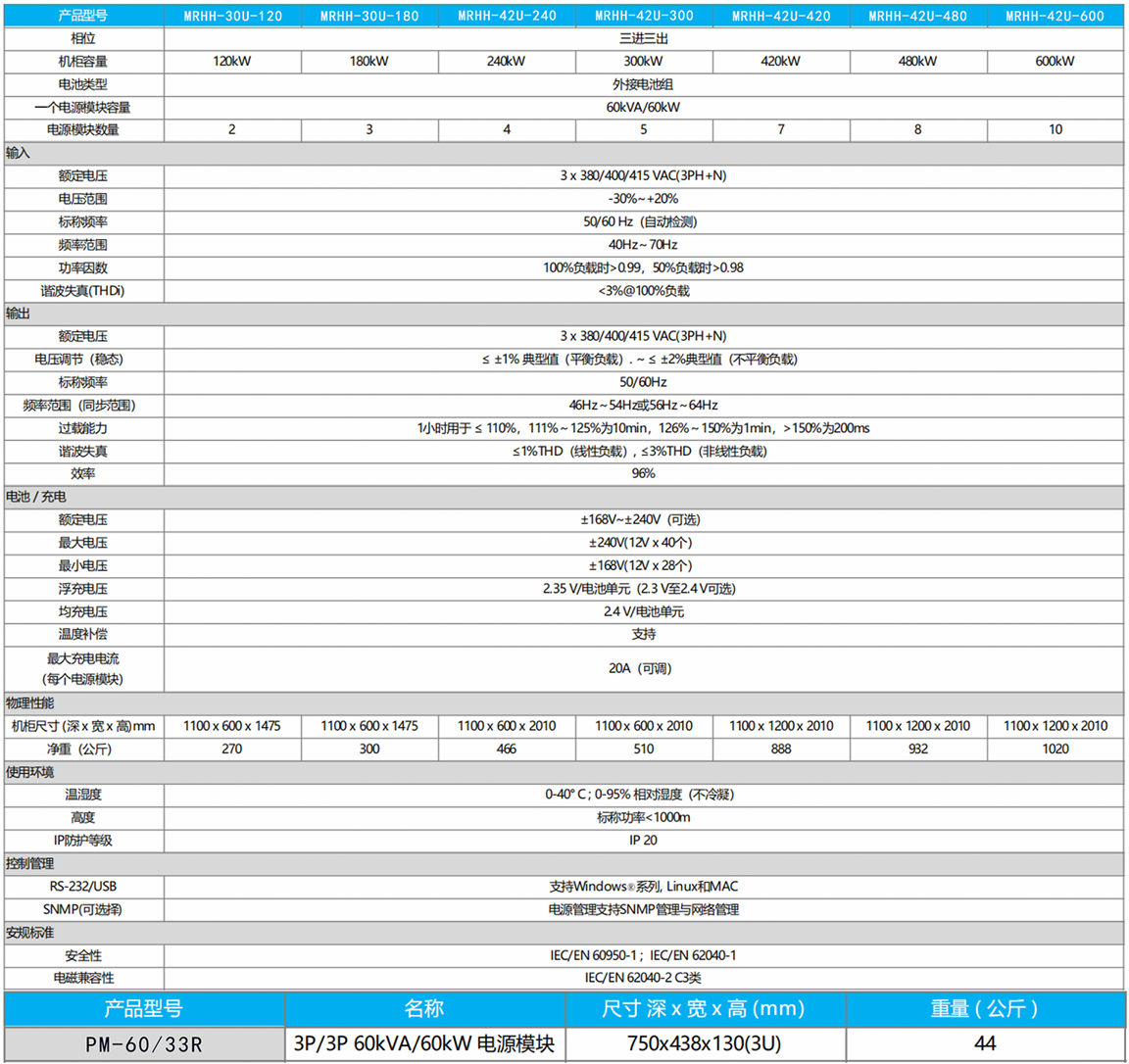 三相輸入三相輸出(42U):60/80/90/100/120/150/180/200/210/240/270/300 KVA