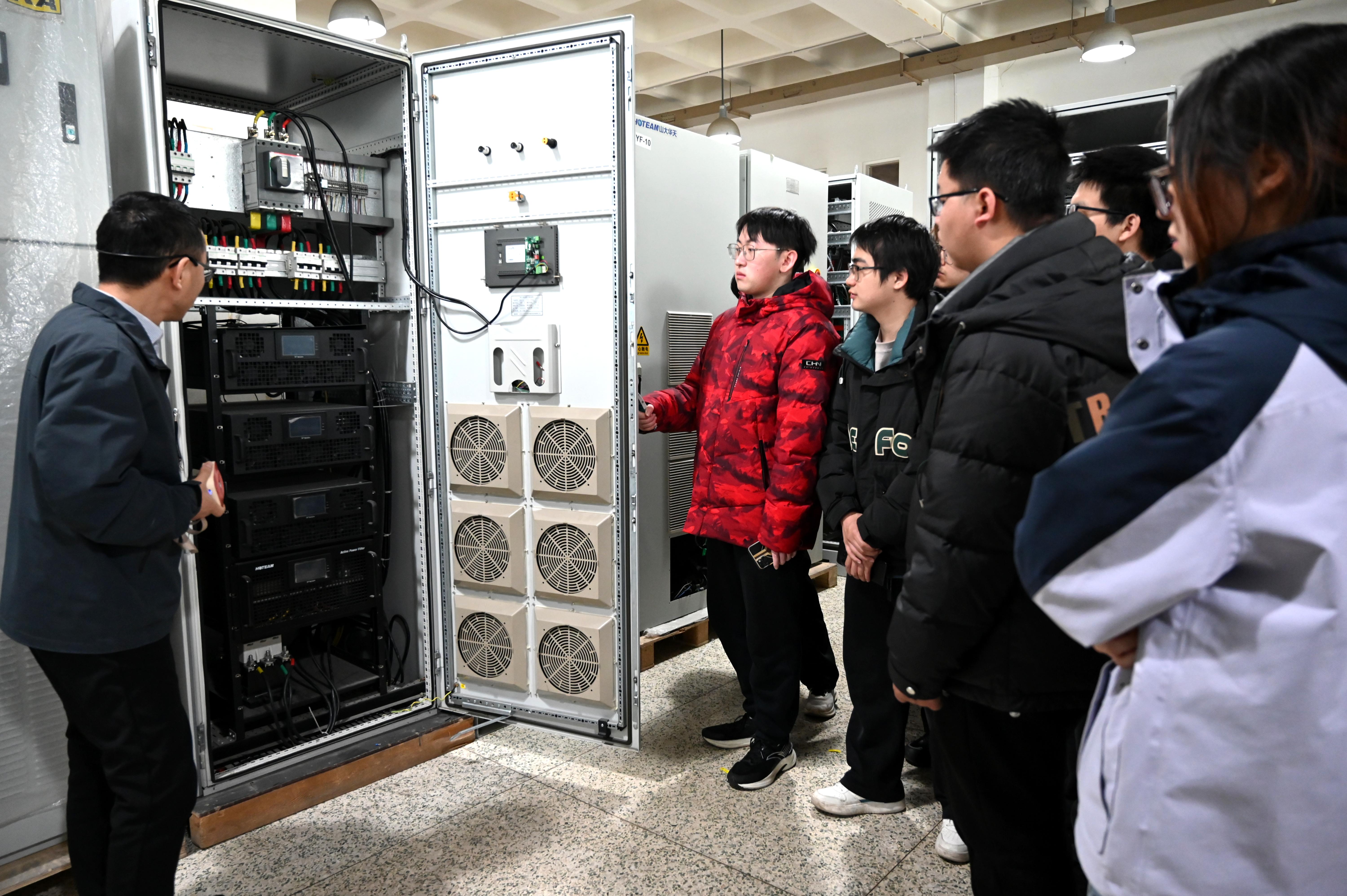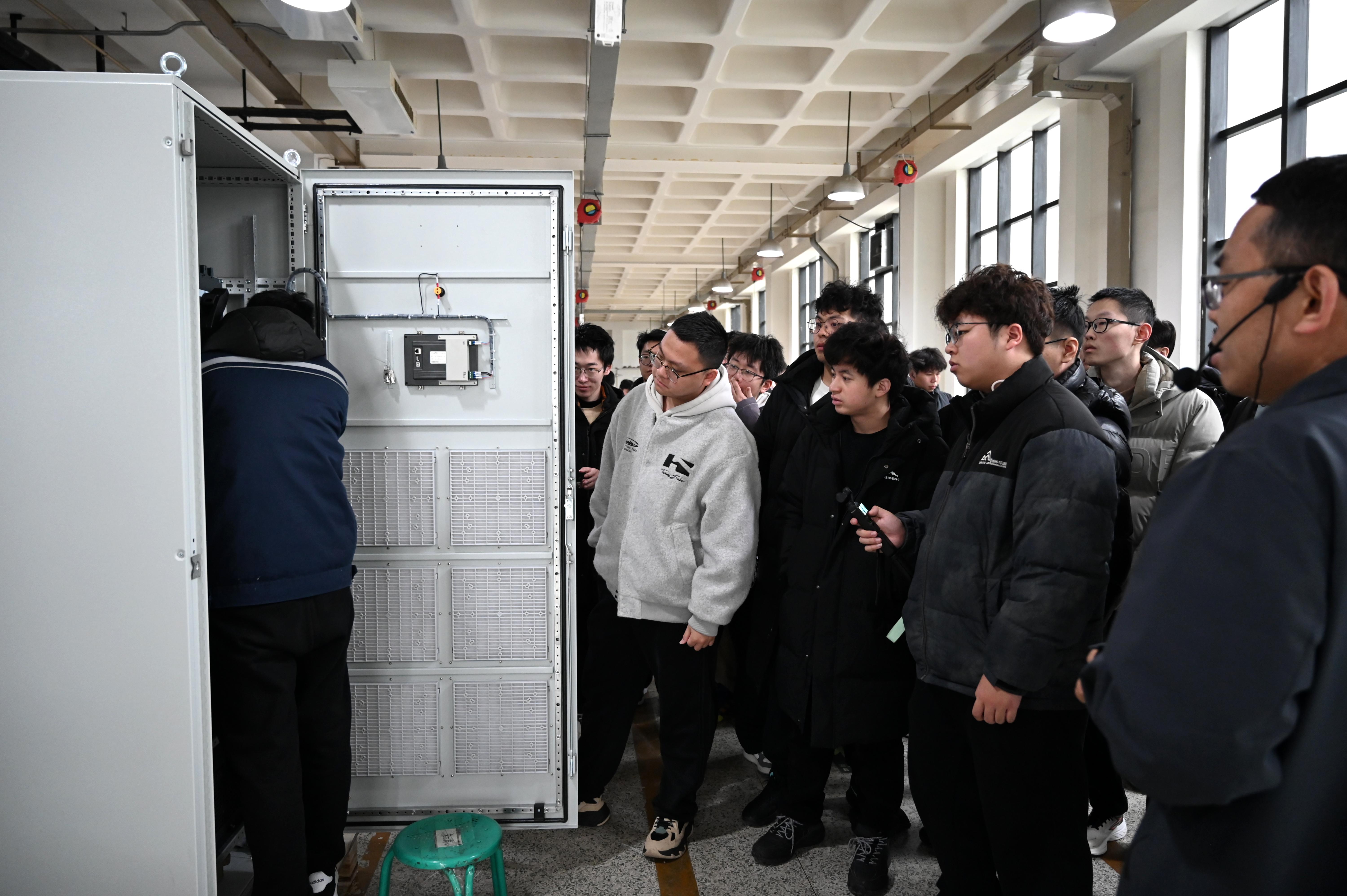 科普講座結束后,同學們走進山大華天的生產車間和研發中心,了解電能質量治理相關產品的生產流程、檢測標準與裝配工藝,從元器件篩選、核心部件組裝,到成品檢測、出廠調試,每一個環節都體現著山大華天“追求最卓越,挑戰最巔峰”的企業精神。學子們駐足觀察、認真記錄,近距離接觸產品,真切體會到“精益求精”的工匠精神,也對電能質量產品的研發、生產與應用有了更全面、更深刻的認知。